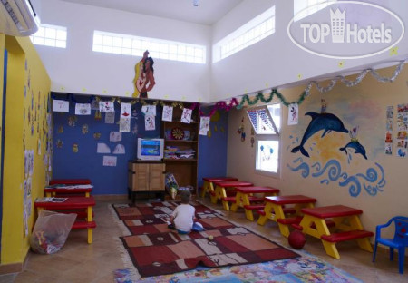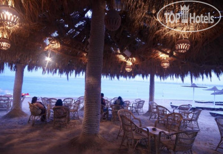 Справа за баром площадка для "боччи", дартс и детская горка для лазания, маленький магазинчик с аксессуарами для плавания. За цены не скажем, не смотрели, и все что надо привезли с собой. Чуть ближе к берегу уголок с сувенирами и массаж ног рыбками.